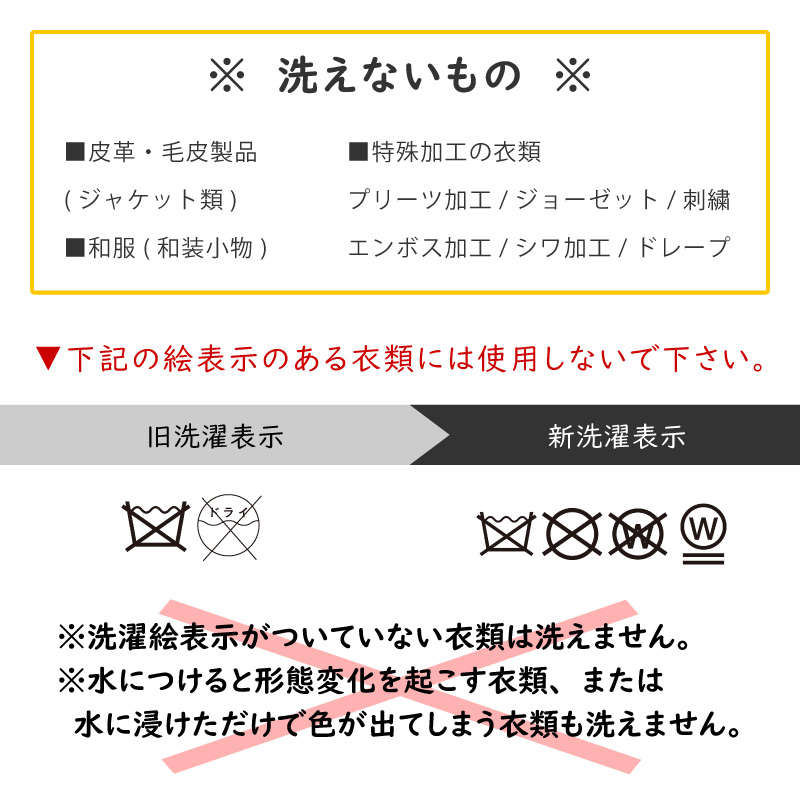 ※当社販売の洗濯ネットのご使用をお勧めします。洗濯物が動かない方が型崩れ防止になります。