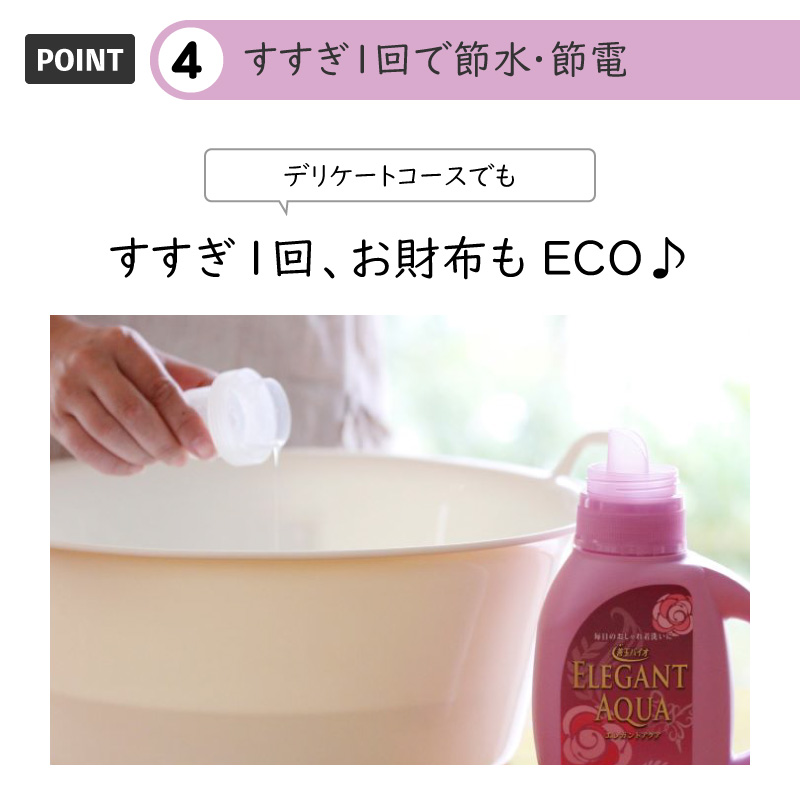 また、一般的なおしゃれ着洗剤での洗たくはタブーとされていたレーヨンやテンセルなどの衣類も生地を保護しながら、お洗濯できシワ・色移り・チジミの発生もなく仕上ります。