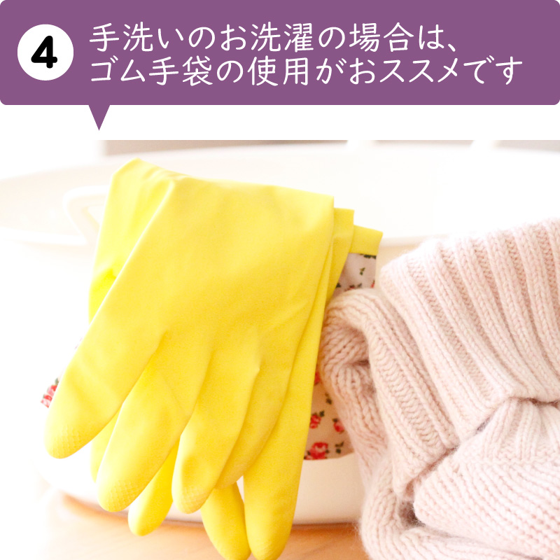 手洗いでのお洗濯の場合は、ゴム手袋の使用がおススメです。